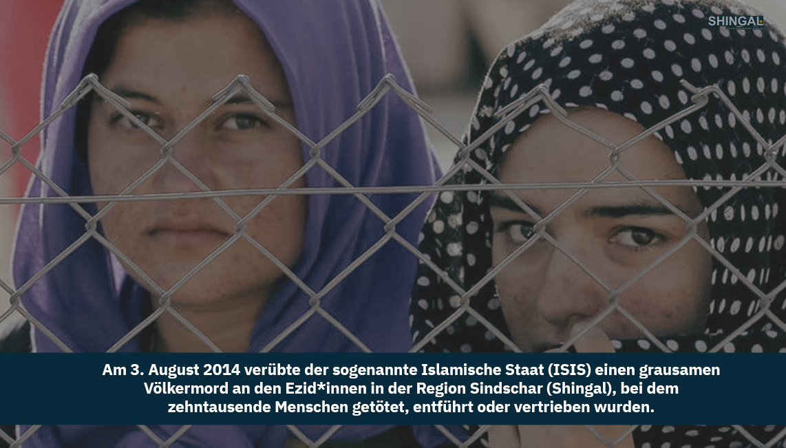 Am 3. August 2014 verübte der sogenannte Islamische Staat (ISIS) einen grausamen Völkermord an den Ezid*innen in der Region Sindschar (Shingal), bei dem zehntausende Menschen getötet, entführt oder vertrieben wurden.